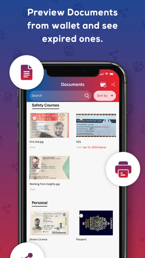 Ticket link App is a simple and effective way to keep digital copies of all your Certificates, Courses, safety orientations, ID etc. allowing you to always have them stored and on hand. No Wi-Fi connection required, scans are stored locally on your device. Keep this secure certificate wallet with you on any job-site, workplace or just daily life and have piece of mind knowing they are safe and access-able if needed. Great for industry certificates as well as personal use. Keep your Passport or Drivers Licence on hand at all times and be reminded before they expire!