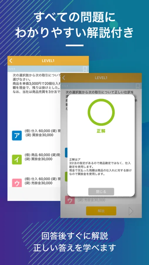 解説も充実し、アプリならではの隙間時間も逃さず効率的に勉強!これで次回試験もバッチリです!