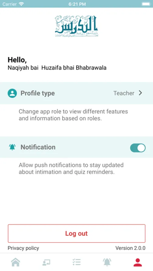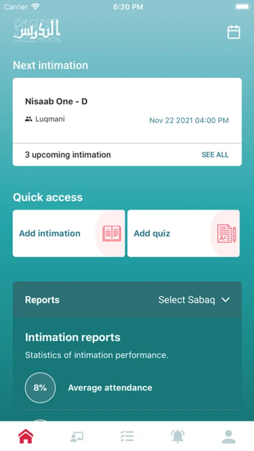 Tadrees app by ALVAZARAT US SAIFIYAH for teachers (sabaq parhawnar) and student as well. The teacher are allowed to create Intimations inside Sabaq Groups they are assigned to, which also sends notifications to the students in the group.