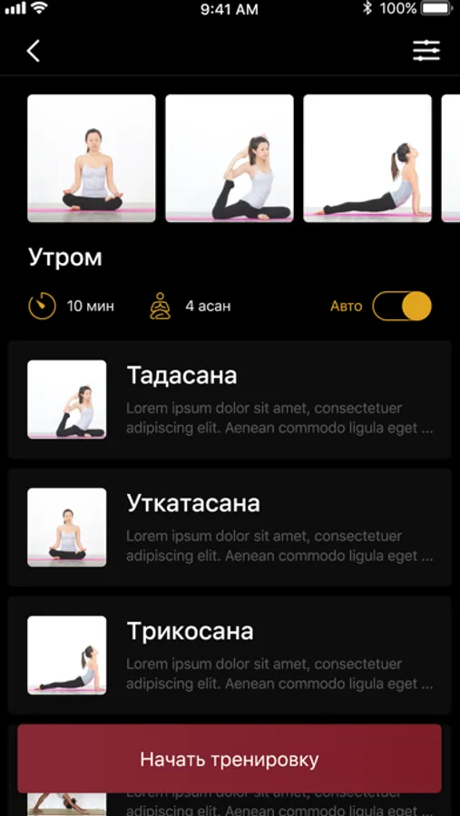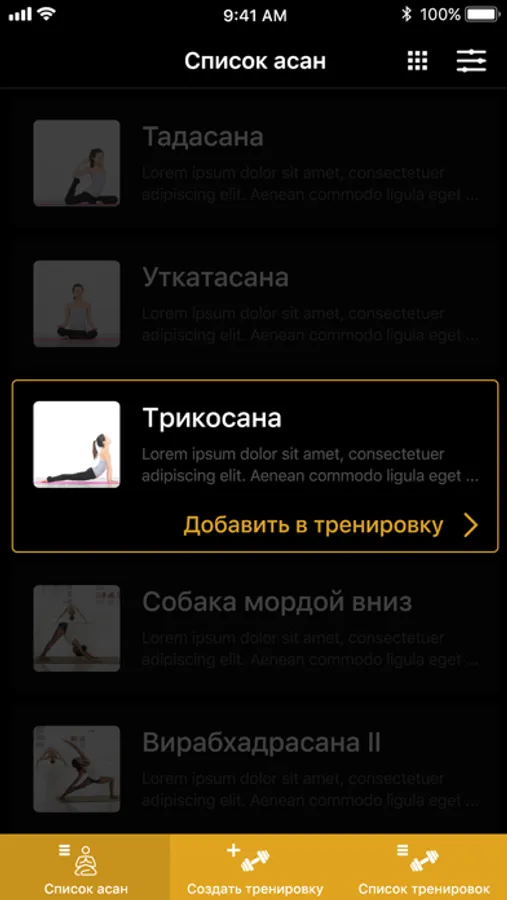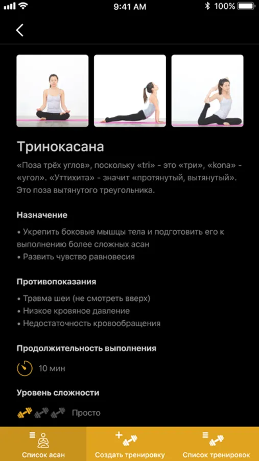 - За несколько секунд выстраивает правильный урок. Укажите асаны, и программа покажет их корректную последовательность;