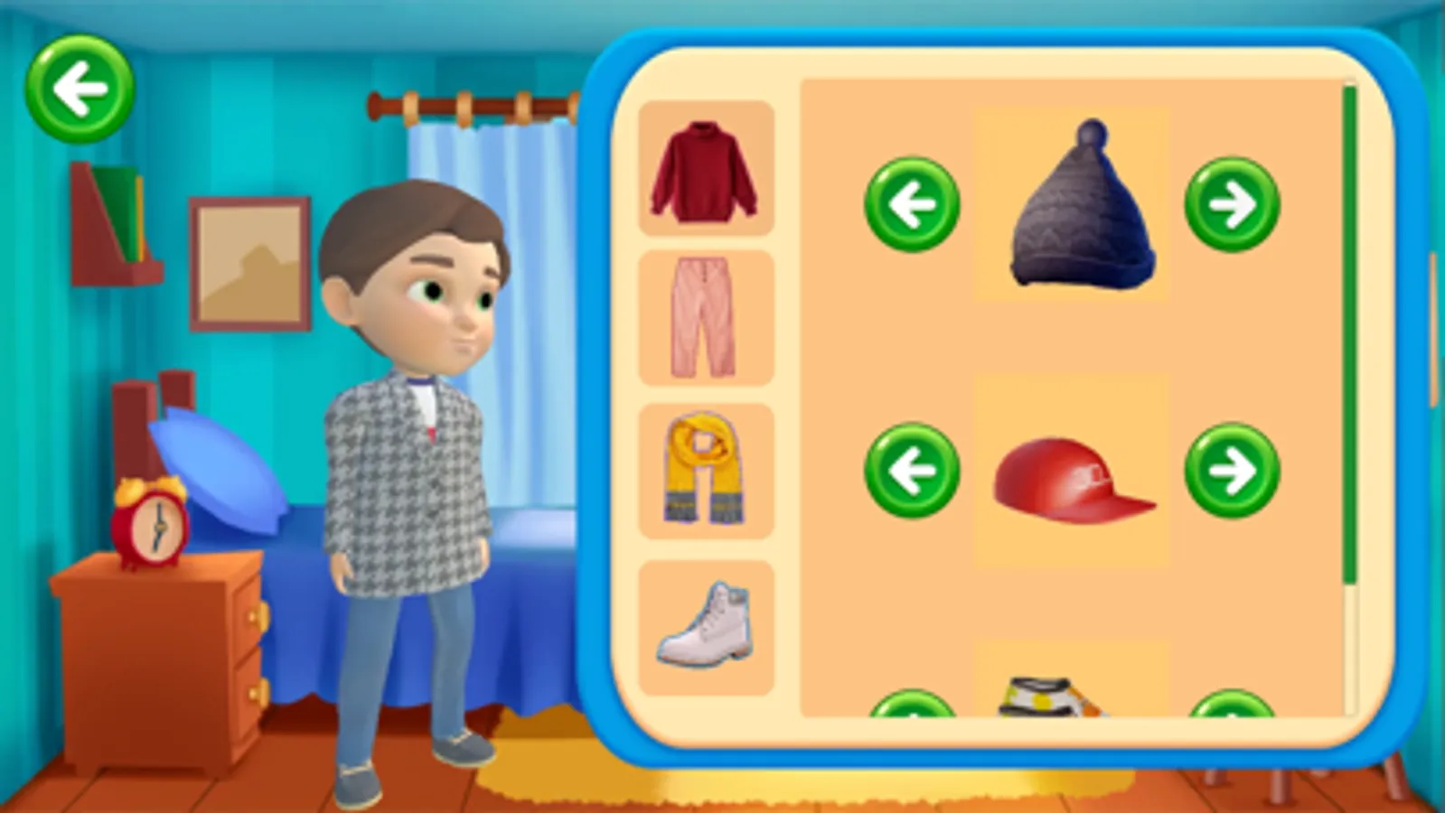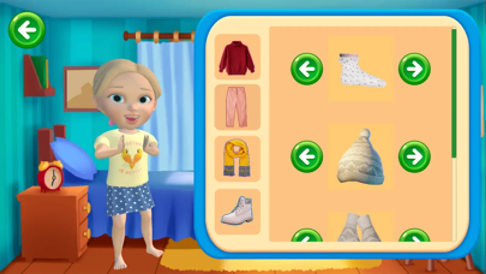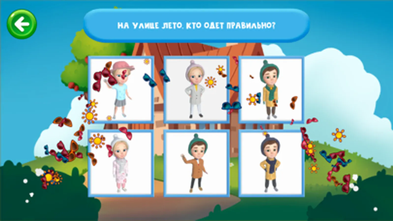 ○ Квест “Подготовка к прогулке”. Игру целесообразно проводить перед непосредственно прогулкой. Персонаж и ребенок будут вместе одеваться для прогулки в зависимости от сезона в правильной последовательности!