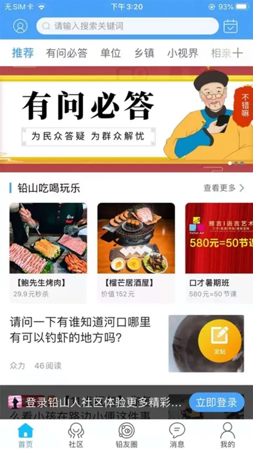 铅山人社区成立于2014年,影响铅山48万用户,及时分享本地生活资讯,不定期开展相亲交友活动,提供大量招聘求职信息,吃喝玩乐享优惠,房屋租售、装修找师傅一站式综合服务