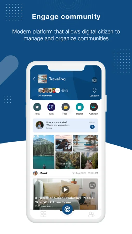 Center is a citizen engagement platform designed to enable citizens of the world to share information, ideas, alerts, events, locations, etc. in real-time in response to crisis and important events in your locations. Ideas for smart cities, technologies, sharing economies, etc. can also be shared across the globe.