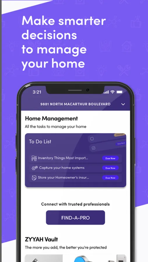 ZYYAH helps homeowners by combining its tools and insights with advanced analytics to facilitate smart home decisions. ZYYAH connects homeowners to a network of vetted service providers and real estate professionals to help you maintain your home. Additionally, We have our own team of experts ready to help you with products and services like home warranty, home insurance, mortgage, and title available to you as soon as you download!