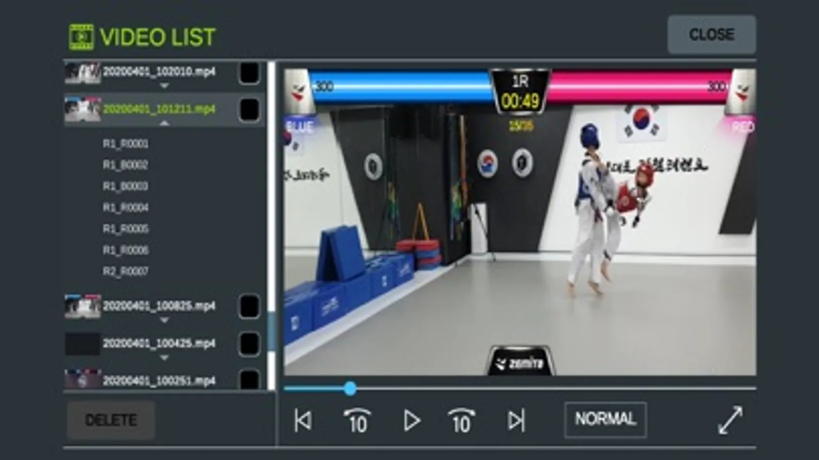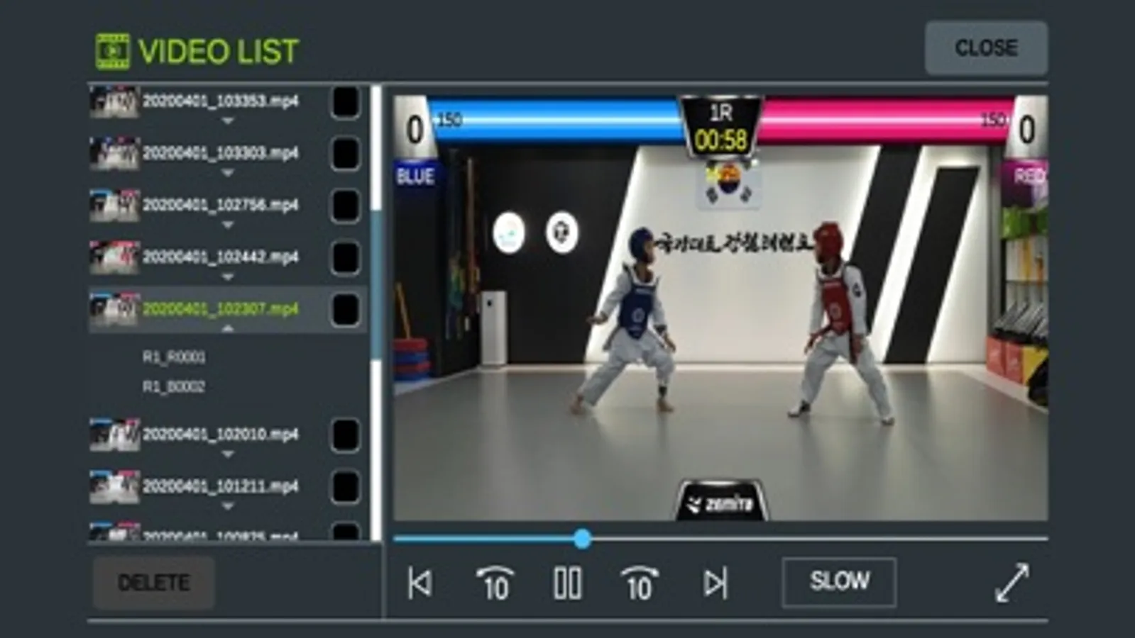 - Scoring (point / energy) is displayed in real time on the top of the screen and recorded together with the sparring video..