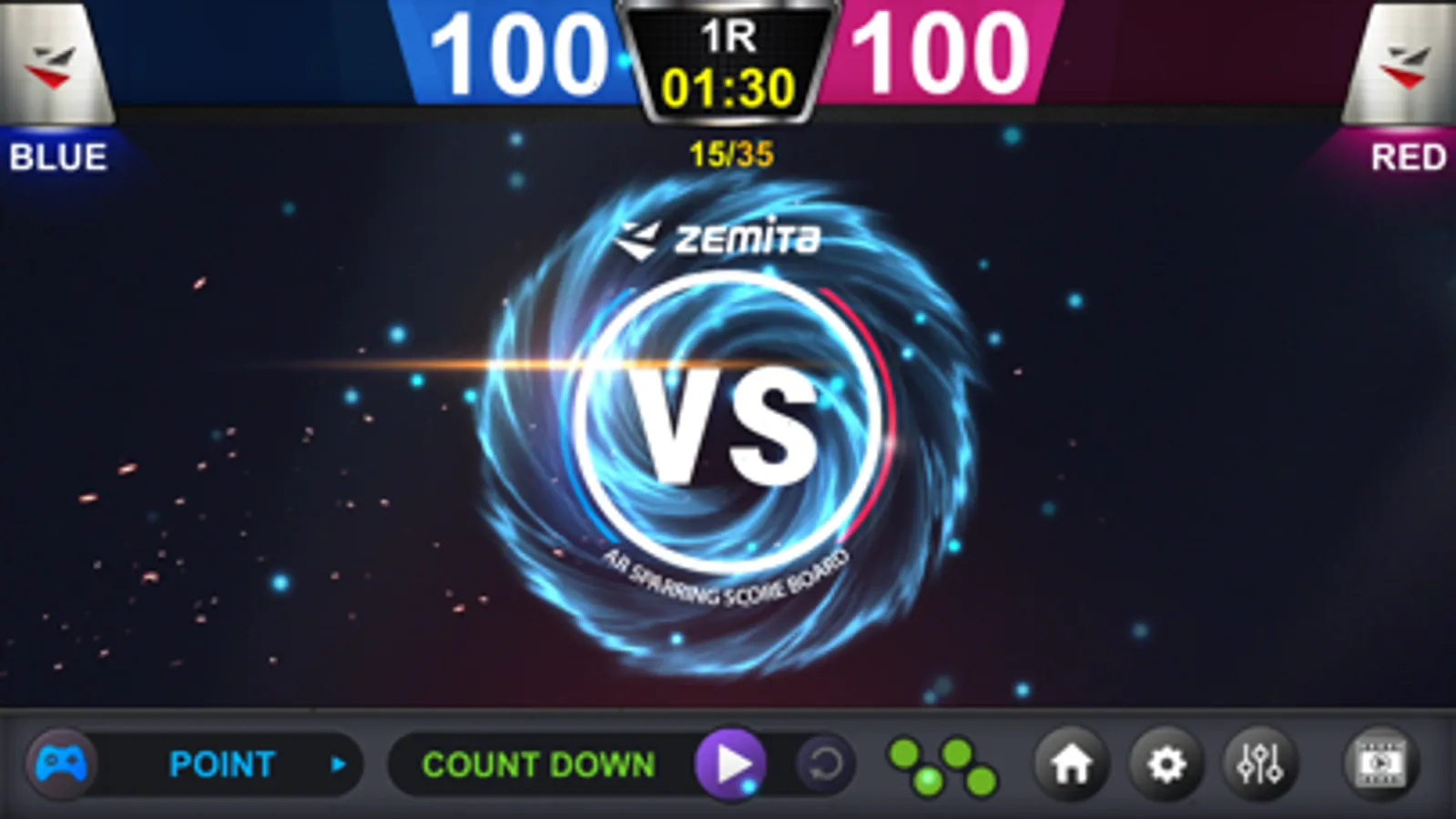 AR Scoreboard consists of Speed (Point) and Power Game, available only with ZEMITA E-Sparring System (ZESS).