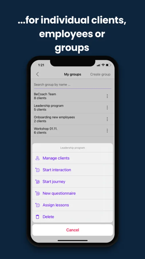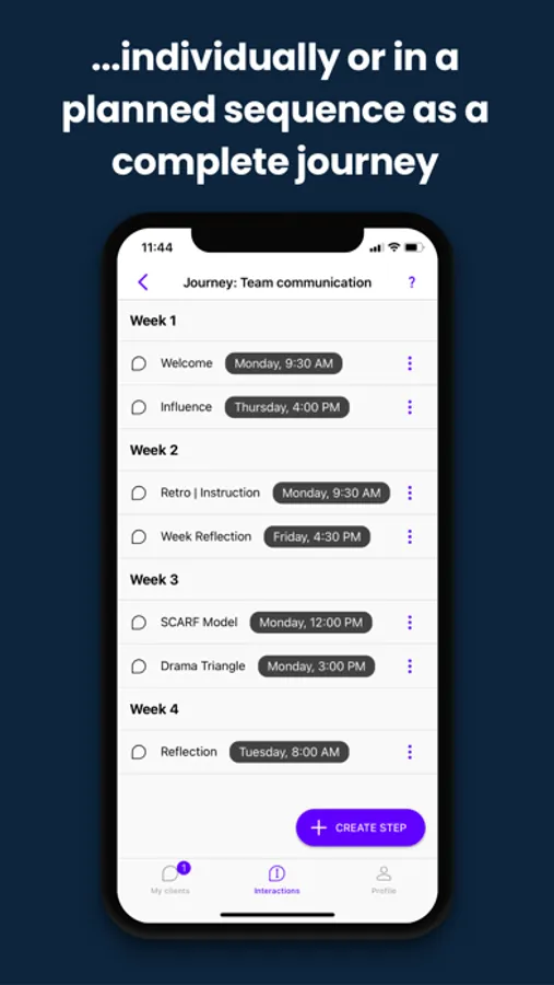 BeCoach offers your clients the learning management system on the go and allows you to provide learning nuggets, exercises, reflections, etc. to the participants with just a tap of your finger. The units can be automated in the BeAssistant app and put into an interactive format - for the best possible individual support of the clients and without much time investment for you!