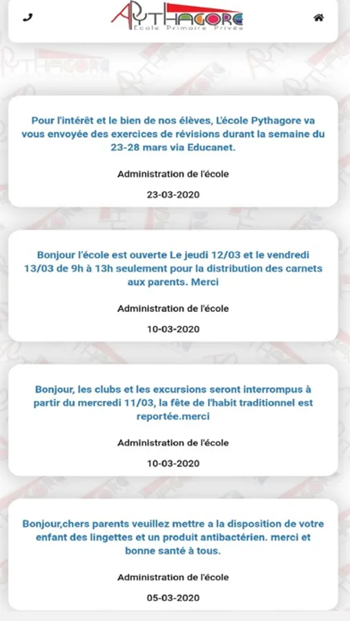 L'application Pythagore mobile permet au parent d'être à côté de son enfant: suivre les activités pédagogiques, recevoir des conseils du cadre de l'école, être à jour pour les évènements culturels et sportifs. Contacter l'administration de l'école, recevoir les bulletins des notes, ....Pythagore Mobile c'est être informé là où vous êtes... Cher parent Pythagore télécharger Pythagore Mobile et entrer votre identifiant et mot de passe disponible par sms ou à l'administration de l'école.