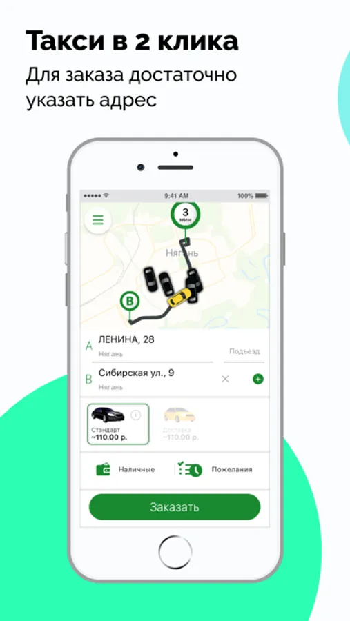 • АВТООПРЕДЕЛЕНИЕ ГЕОПОЗИЦИИ — позволяет вызвать такси даже если вы находитесь в незнакомой точке города.