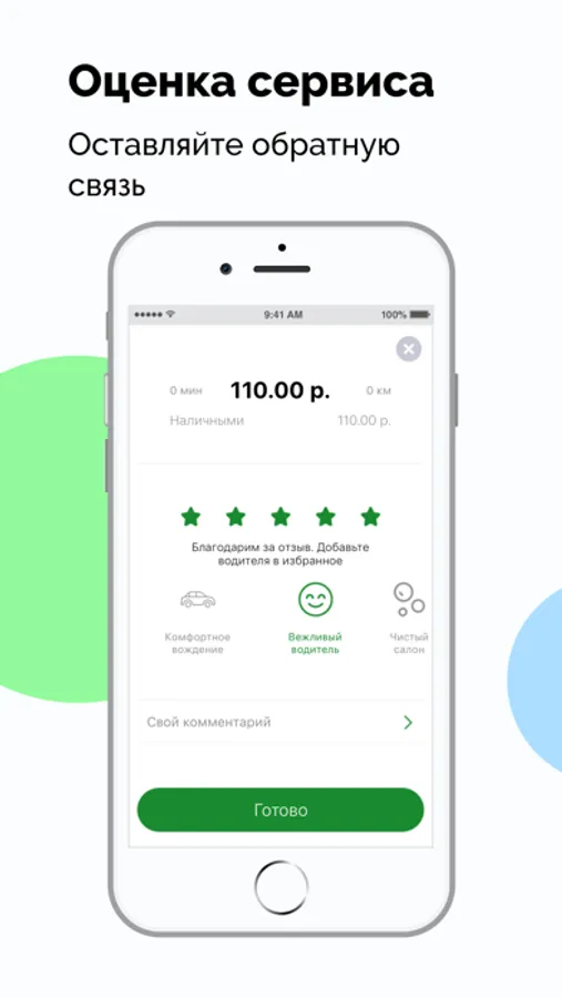 • ОЦЕНКА СЕРВИСА — мы ценим мнение каждого клиента и рады получать от вас обратную связь. От вас зависит персональный рейтинг водителя.