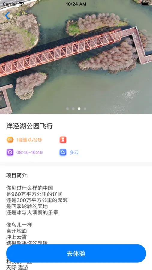 BODY—无人机:您可以通过电脑、移动终端远程操控无人机;无人机自动起飞升空,在抵达安全空域之后,通过视频可以看到从几十米高空俯视大地的景况,同时可以控制无人机进行巡航,感受一下驾驶无人机的乐趣;在操控结束后,无人机将自动返航,无需操控。