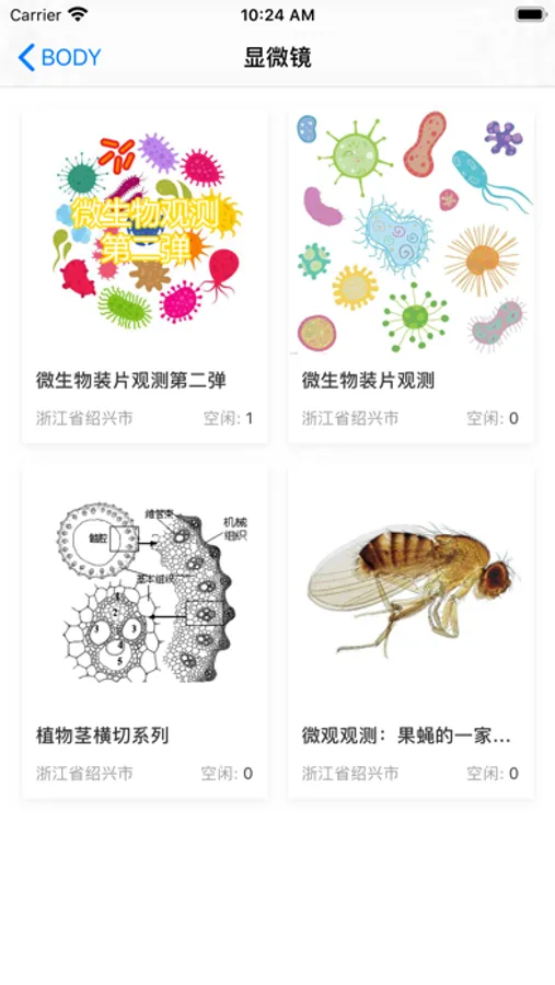 BODY—显微镜:通过远程控制真实的显微镜,进行简单的操作,对微观世界进行观测;我们准备了上百个动植物细胞样本供您观测,带您走近不一样的微观世界。