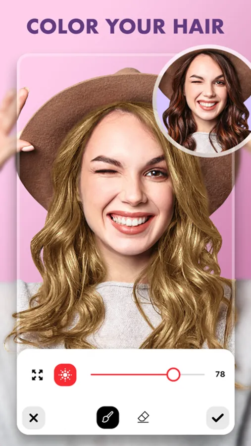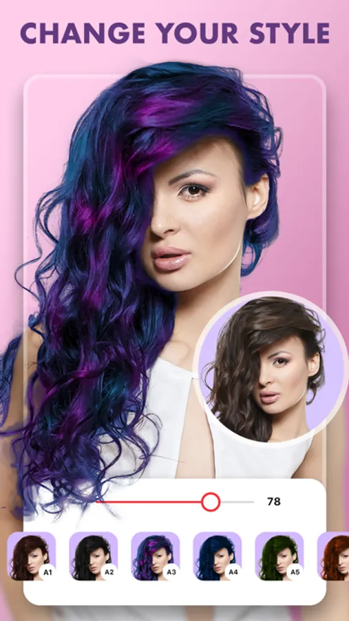 Do you have a wish to look like a star? Thinking about changing your hair color? Want to know how you would look with a different hair color? Bright purple or natural blonde? Look no further! You will love how quickly you can see the results with Hair Color Changer.