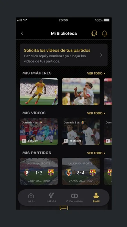 Recibe automáticamente, gracias a un innovador sistema de etiquetado, todas las imágenes en las que apareces durante los partidos, y solicita acceso a los vídeos de todos los partidos completos que hayas disputado como jugador de LALIGA para poder descargarlos donde quieras.