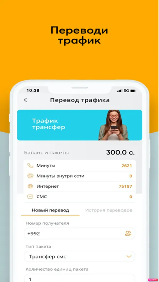 • Переводи минуты, мегабайты и смс с услугой «Трансфер»;