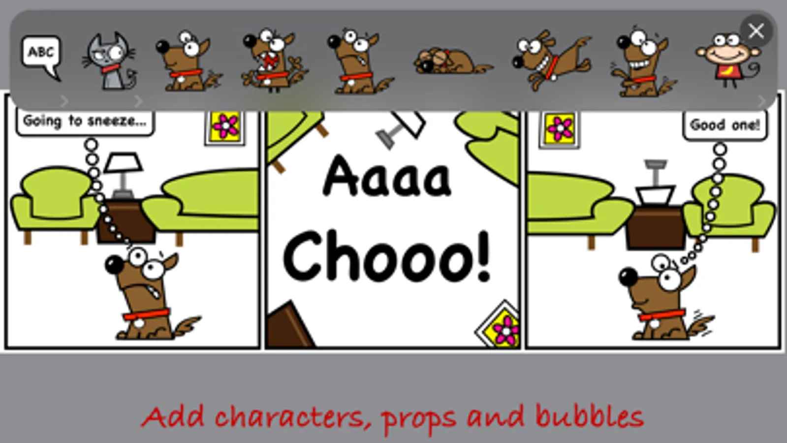 All you need to do is drag the characters and props into a strip, resize or rotate to get them just how you like, and add your words… it's quick and easy. You can be funny, political, or romantic. You can educate, surprise and inform. Or re-live a private joke with your best mates in a cartoon strip.