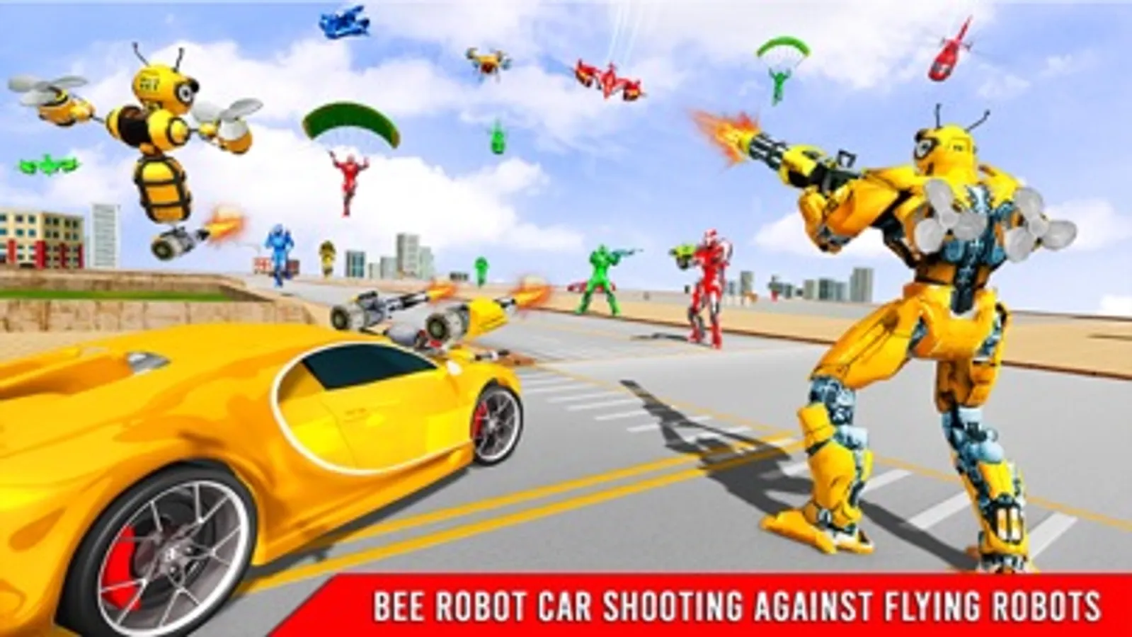 If you love to play robot games, be the part of this robot wars where you can unlock multiple powerful robots and play with multiple superpowers that will double the joy of playing robot shooting games. Enjoy amazing animations, transformations and sound effects in level mode and free mode provided in this bee robot game. Smooth controls of driving robot cars give the ultimate experience of robot battle in 3d city environment. Have a look at key features and enjoy the bee robot transform game 3d.