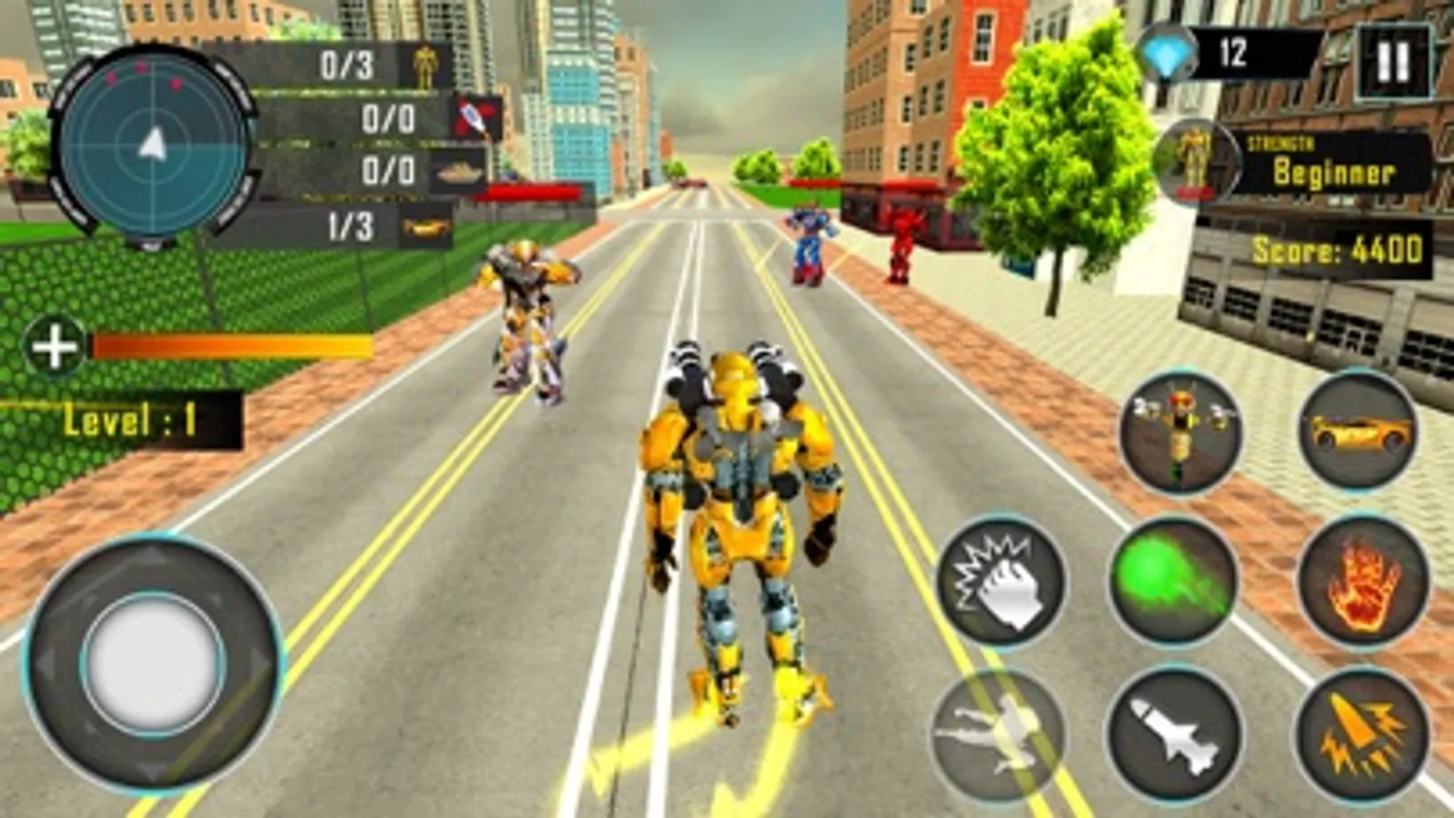 Enjoy futuristic robot war in a new bee robot game where you will enjoy robot transformations into bee robots and cars. This bee robot game encloses a lot of challenging missions to fight against evil robots and AI-driven shooting cars roaming in the city. You have to tackle the war against enemy drones and spaceships as well. Mini-map will help you locate your targets. Pickup gems to unlock exciting robot powers. Health pickup will increase your robot life. Let’s practice your shooting skills and level up your strength in this robot game.