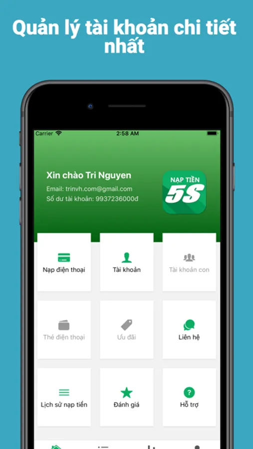 Ứng dụng NapTien5s giúp đại lý nạp tiền nhanh trên di động, đặc biệt là các em học sinh có thể nạp tiền cho gia đình, người thân hoặc bạn bè với mức chiết khấu hấp dẫn.