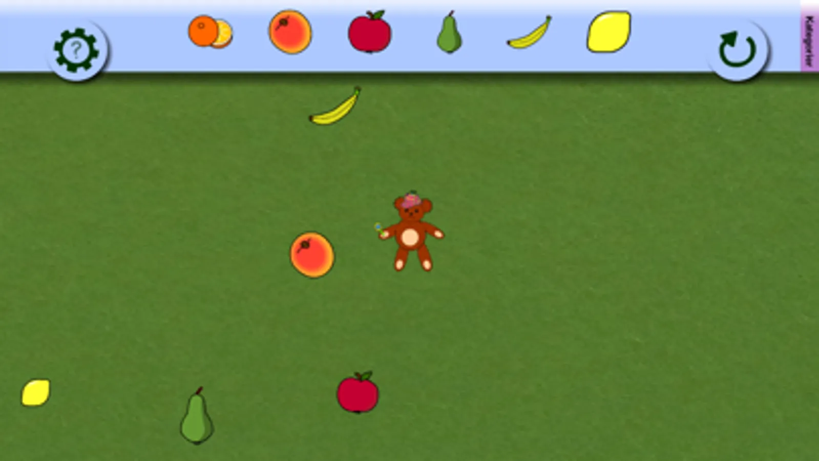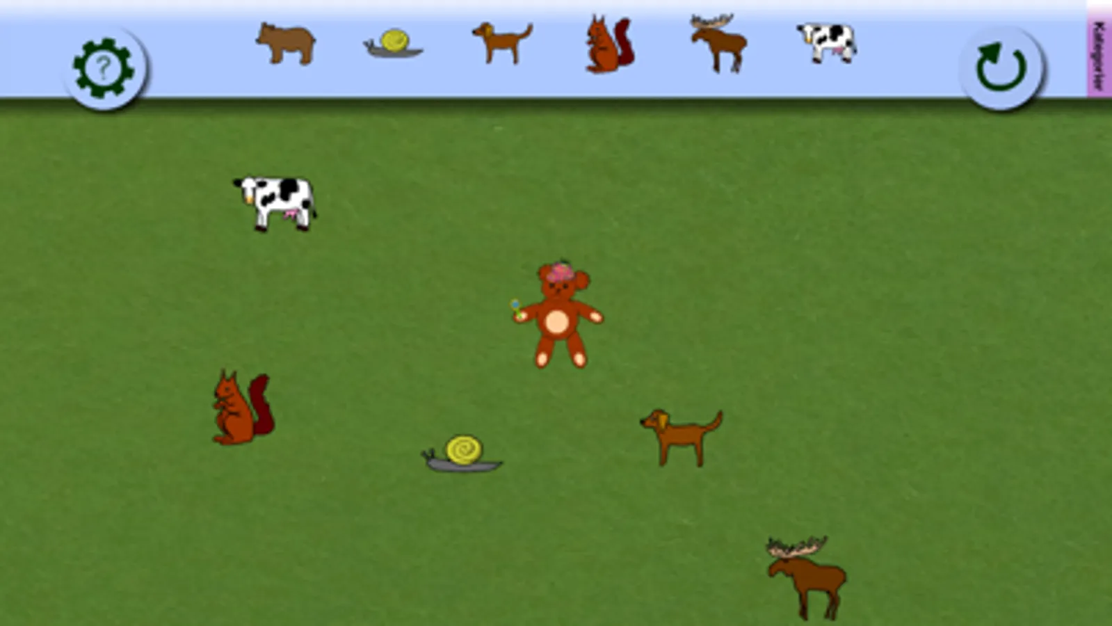 Gå på upptäcktsfärd med nallen genom att trycka på skärmen dit du vill att nallen ska gå. Tryck på en sak på spelplanen så går nallen och undersöker den. Du får nu höra vad det är. Hör saken till den aktuella kategorin? Om du vill plocka upp saken, tryck på den igen.