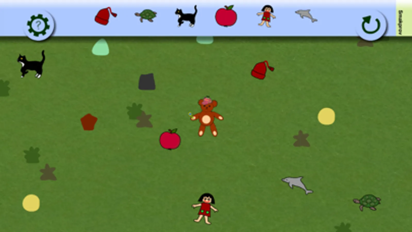 Gå på upptäcktsfärd med nallen genom att trycka på skärmen dit du vill att nallen ska gå. Tryck på en sak på spelplanen så går nallen och undersöker den. Du får nu höra vad det är. Är det saken du letar efter? Om du vill plocka upp saken, tryck på den igen.