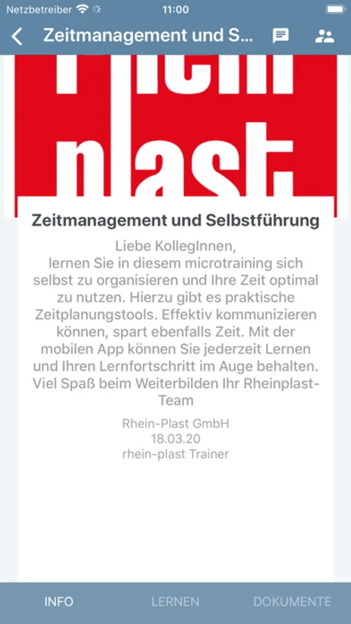 Rhein-Plast liefert hochwertige Folienverpackung aus Polyethylen in die Branchen Pharmaindustrie, Bio-Tech, Medizin, Industrie und Lebensmittel. Deswegen produzieren wir streng nach den gesetzlich geforderten Regelungen für eine „gute Herstellungspraxis“ (GMP). Diese bringen hohe Anforderungen an Hygiene, Räumlichkeiten, Ausrüstung aber auch an Dokumentation und Kontrolle mit sich. Die App hilft dabei, unsere Mitarbeiter -in allen denkbaren Bereichen- nachhaltig so zu schulen, dass sie immer auf dem aktuellen Stand sind und diesen hohen Anforderungen gerecht werden. Die Bandbreite der Schulungen reicht von Hygieneregeln und Umweltschutzmaßnahmen über „Best-Practices“ in der Produktion bis hin zum souveränen Umgang mit unseren Partnern und Kunden. So tragen wir zu einem hochwertigen, verlässlichen Gesamtpaket für unsere Kunden bei, das mehr ist, als nur das reine Produkt.