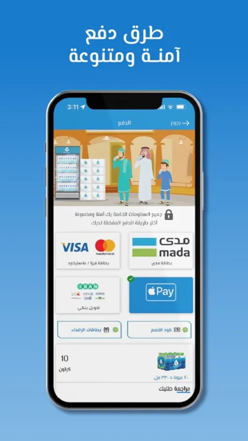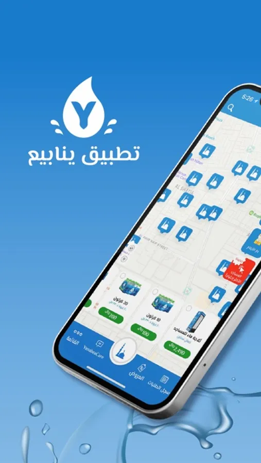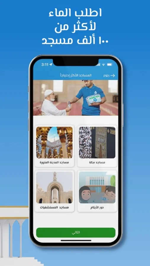 تطبيق "ينابيع" يوفر لك خدمة توصيل كراتين وثلاجات الماء إلى المساجد ودور الأيتام من خلال خطوات ميسرة وبسيطة.