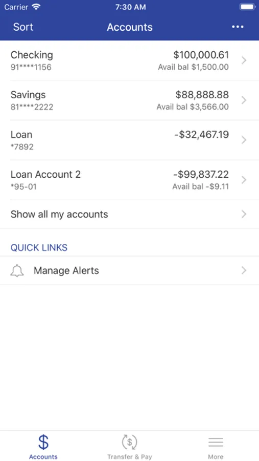 Mobile Application for First National Bank of Lake Jackson customer online access.