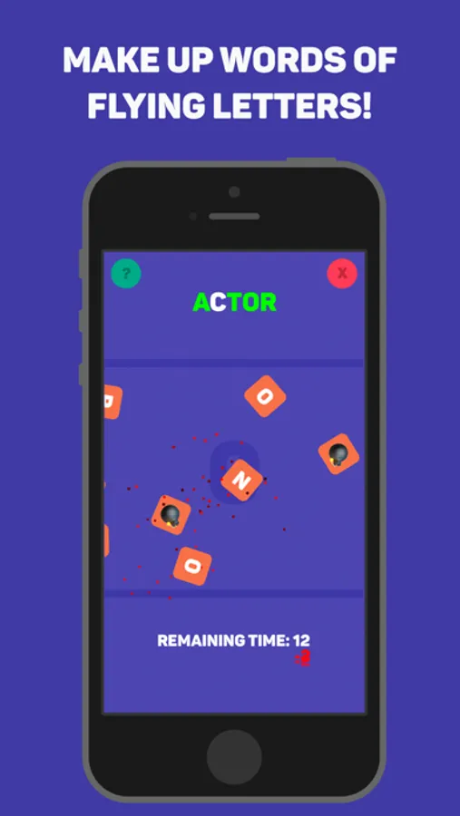 Your mission is to collect words in 30 seconds. The words appear at the bottom of the screen. To collect a word, click on the flying letters. If you click on a letter that is in the word, this letter will turn green. When you click on all the letters of a word , it will disappear and a new one will appear! For collected words you’ll receive points and extra time!