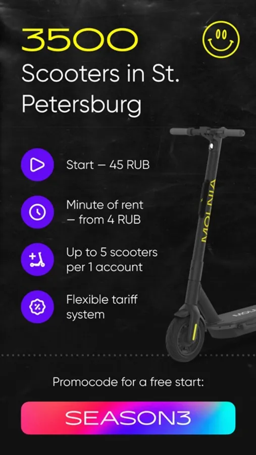 - Scooter rental from 4 ₽/min;
