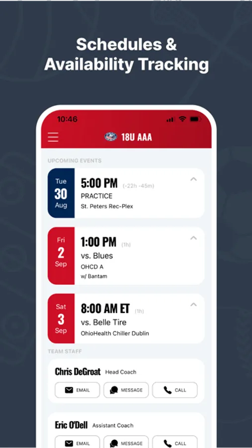 Team Staff - Easily access information to communicate with your coaches and team managers.