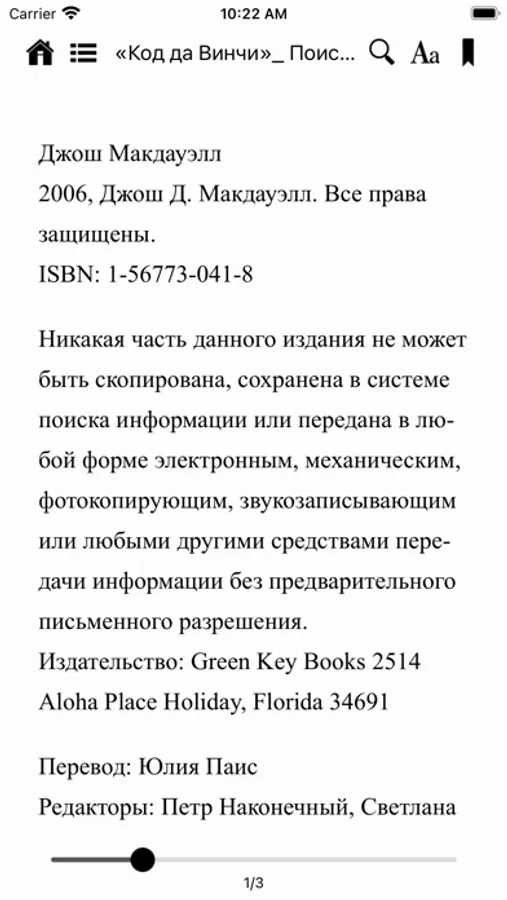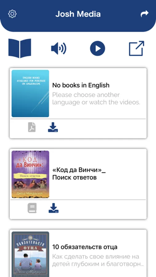 The app contains books from several genres: detective stories, novels, short stories, parenting, relationships, history, and apologetics.