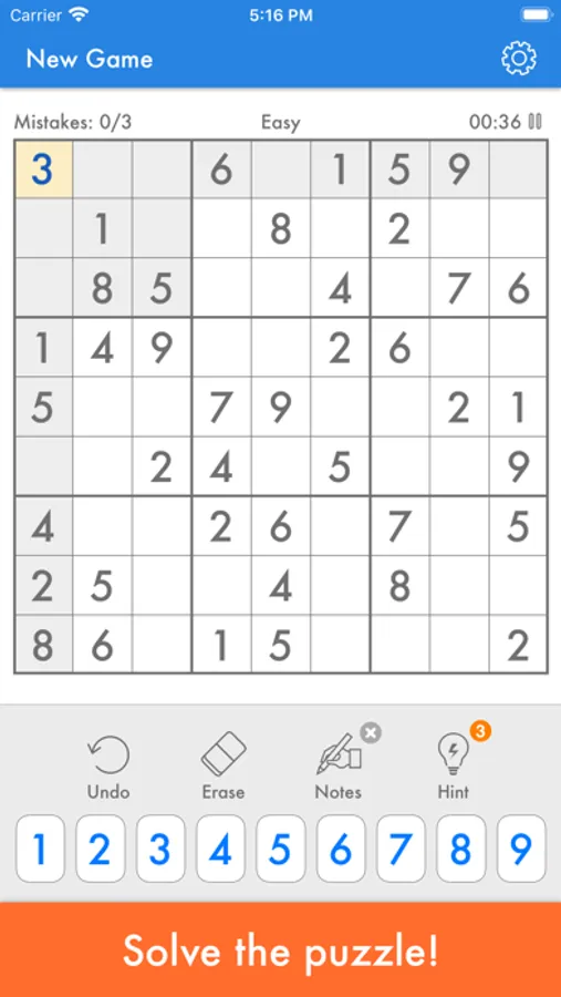 * Easy and fun to play: tap the empty cells to fill them with numbers.