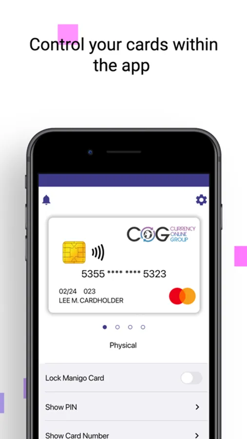 • Real time COG card and account controls to block your card or disable online or contactless payments