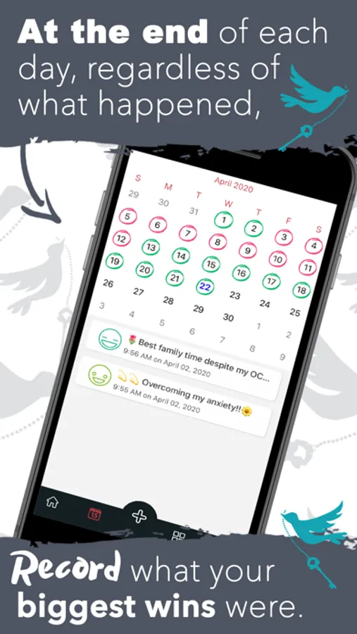 OCD Anxiety Therapy Relief App is collecting recorded moods and activities in a calendar. This format will help you understand your habits better. Keep track of your activities and daily wins and create momentum to feel better during this hard time.