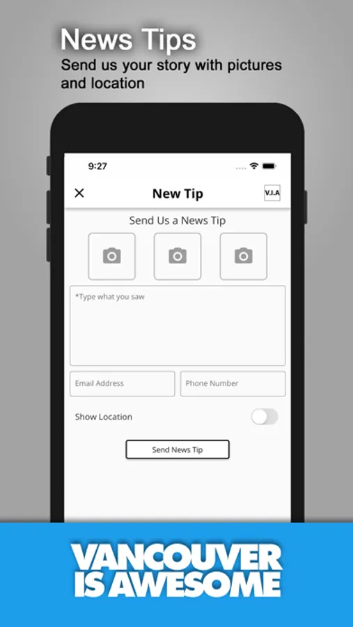 News tips - Effortlessly send a news tip which can include photos and location services.