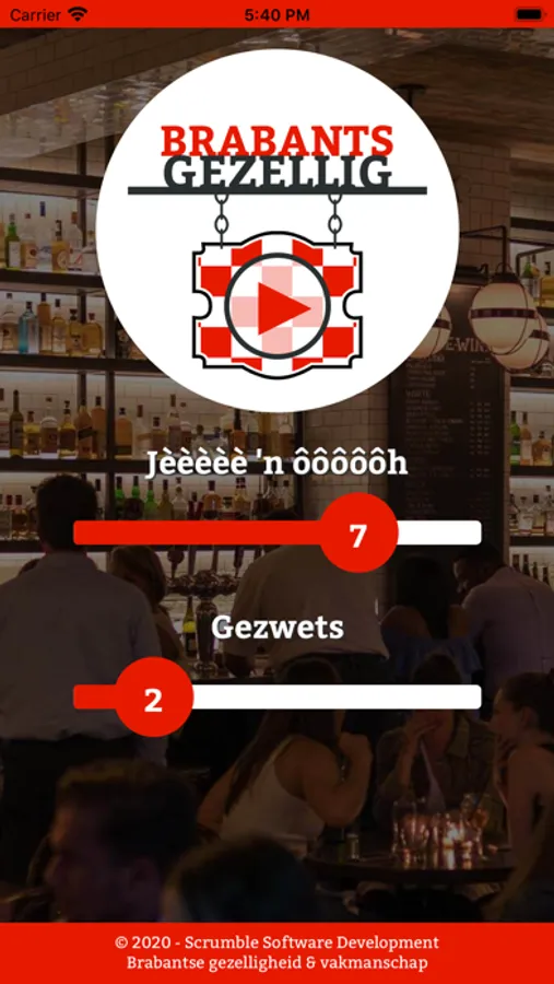 In de Brabants Gezellig app kan je ten alle tijden en vanuit waar dan ook de Brabantse sfeer in huis halen. De app geeft jou de keuze om te luisteren naar geluiden die je in het weekend in de kroeg hoort.