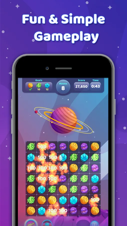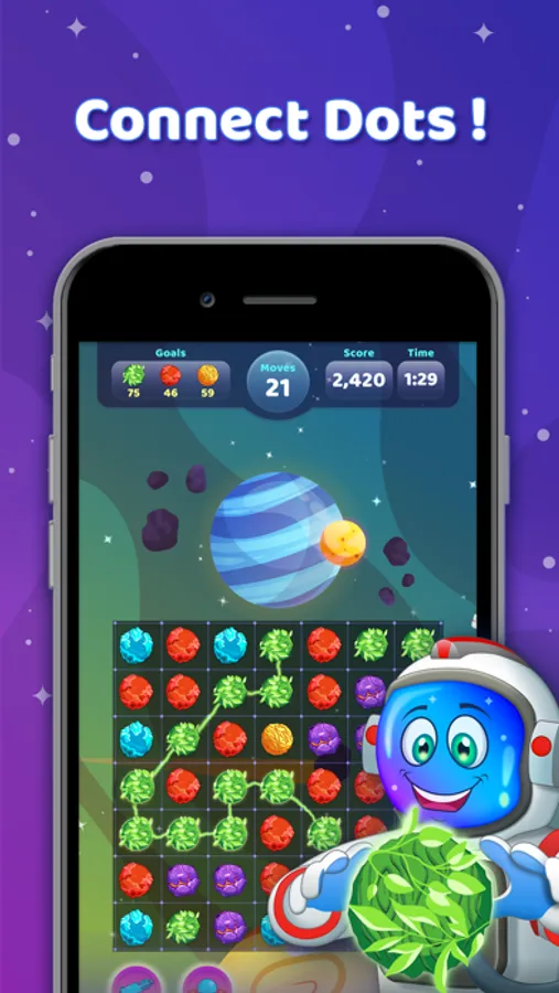 As you can guess, the main goal is to connect adjacent planets of the same color to collect them.