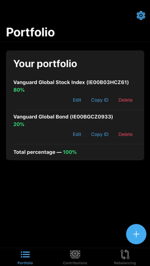 - First of all you need to set up your portfolio: names, identifiers and percentage that you want to achieve.