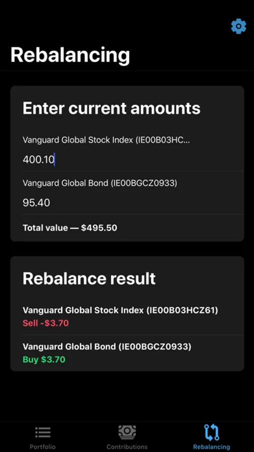 - Then, when you want to make a rebalance on your funds, you must simply add the amount of money you have on each fund. The app will calculate if you must buy or sell on each fund, and the money to move.