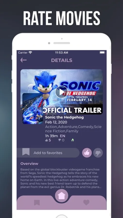 • Rating System: You can rate if you like a movie or not, help other users with your ratings.