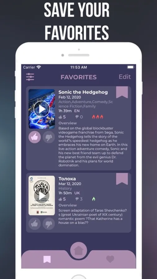 • Save your favorites: Save a list of the movies you are interested.