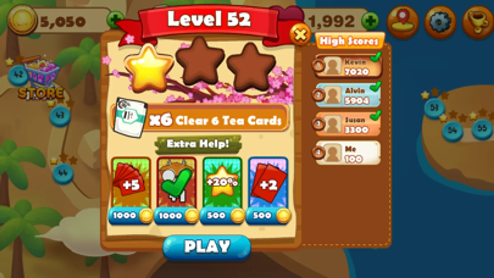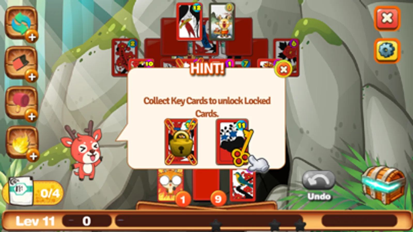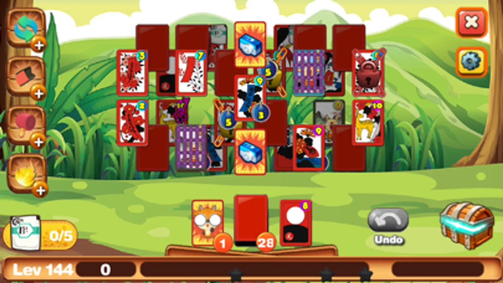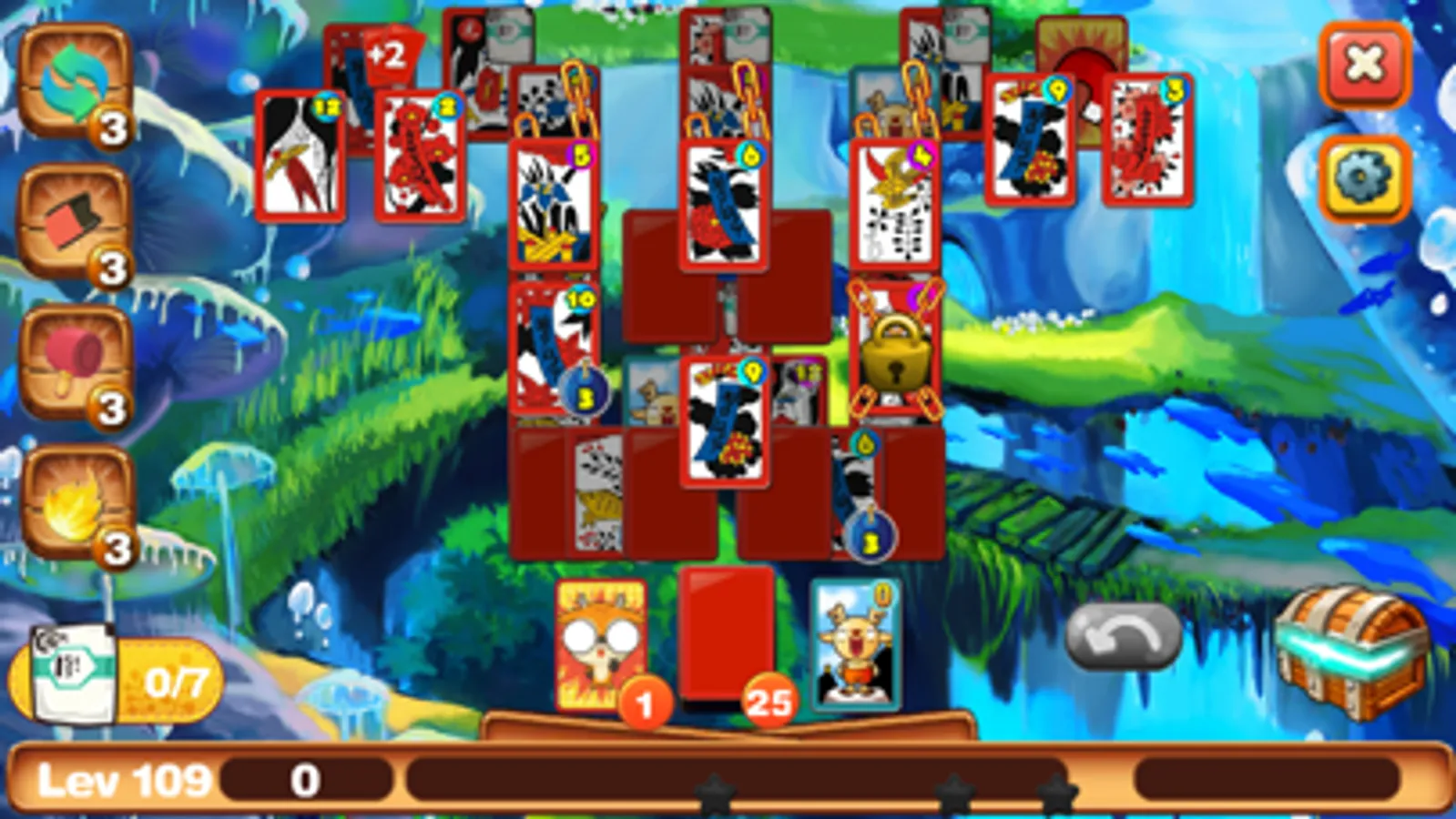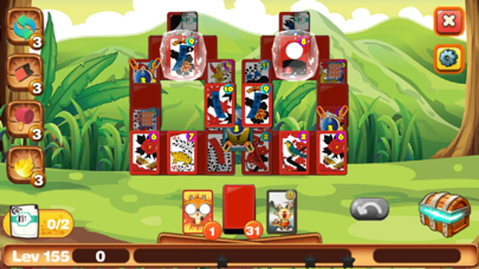 Clear all the Tea cards from the board! Eliminate one card from the screen pile by tapping the number higher or lower than the number shown at the bottom of the screen.