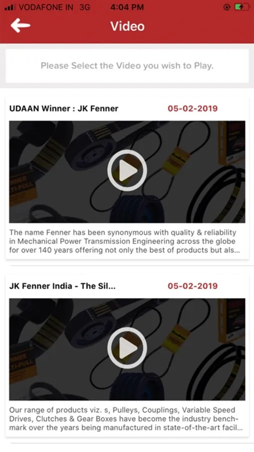 App provides an insight into the exhaustive Product Catalogue of the JK Fenner. Along with that, it gives the user the opportunity to view and download the most recent Product Demo videos and Product Price List in the Communications section.