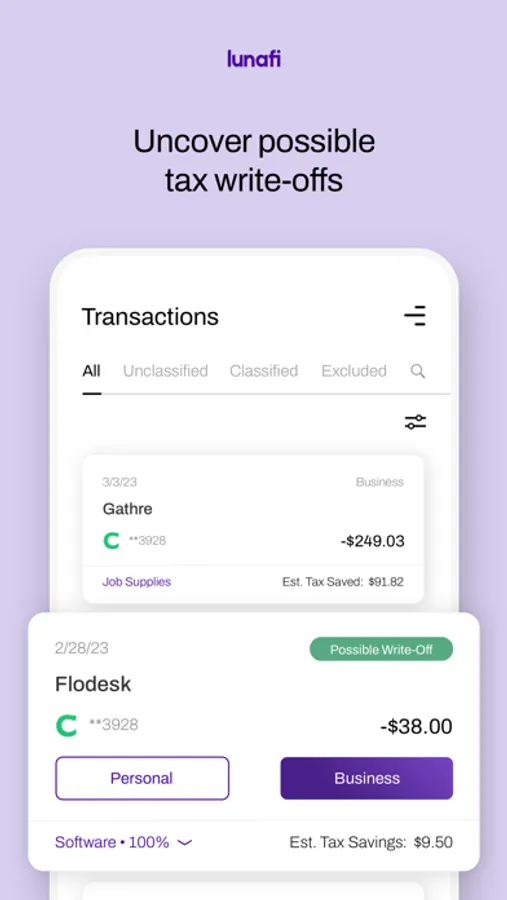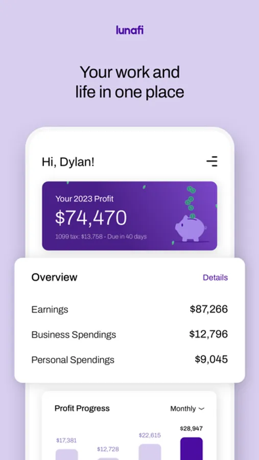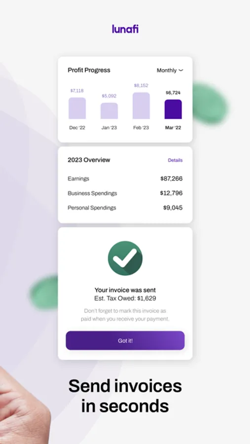 Start your free trial now! Manage your finances effortlessly with Lunafi, if you are a self-employed freelancer, independent contractor, consultant, or a small business owner.