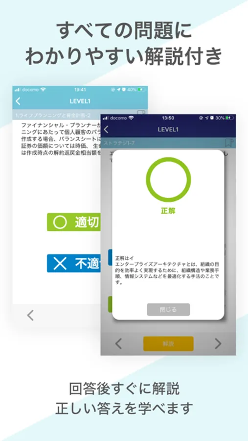 解説も充実し、アプリならではの隙間時間も逃さず効率的に勉強!これで次回試験もバッチリです!