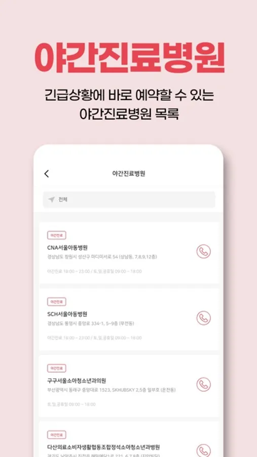 2. 위치 : 내 위치 정보를 활용하여 주변의 병원 정보 제공