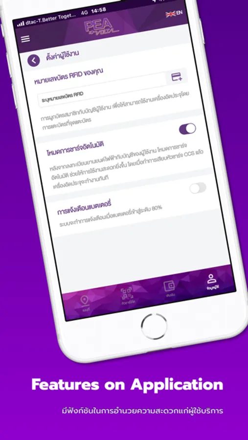 6. มีบริการสแกนคิวอาร์โค้ดหน้าตู้ชาร์จเพื่อสะดวกต่อการใช้งาน และไม่ต้องพกบัตร