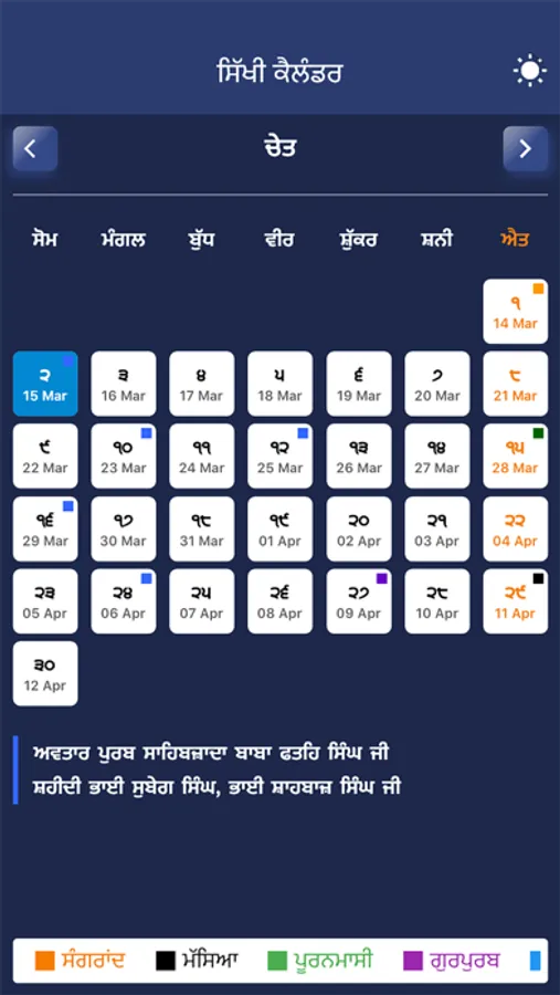 Sikhi Calendar Screenshots