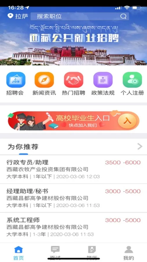 西藏公共就业招聘立足于西藏自治区、服务全国,为广大用户提供免费发布招聘信息、求职简历、招聘会、教育培训信息等服务的平台,同时提供就业法规政策、职业指导等信息查询服务。